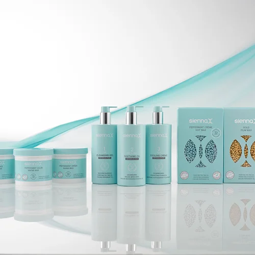 The Sienna X wax range includes both hot and vegan warm waxes, with non-sticky formulations that leave no residue.